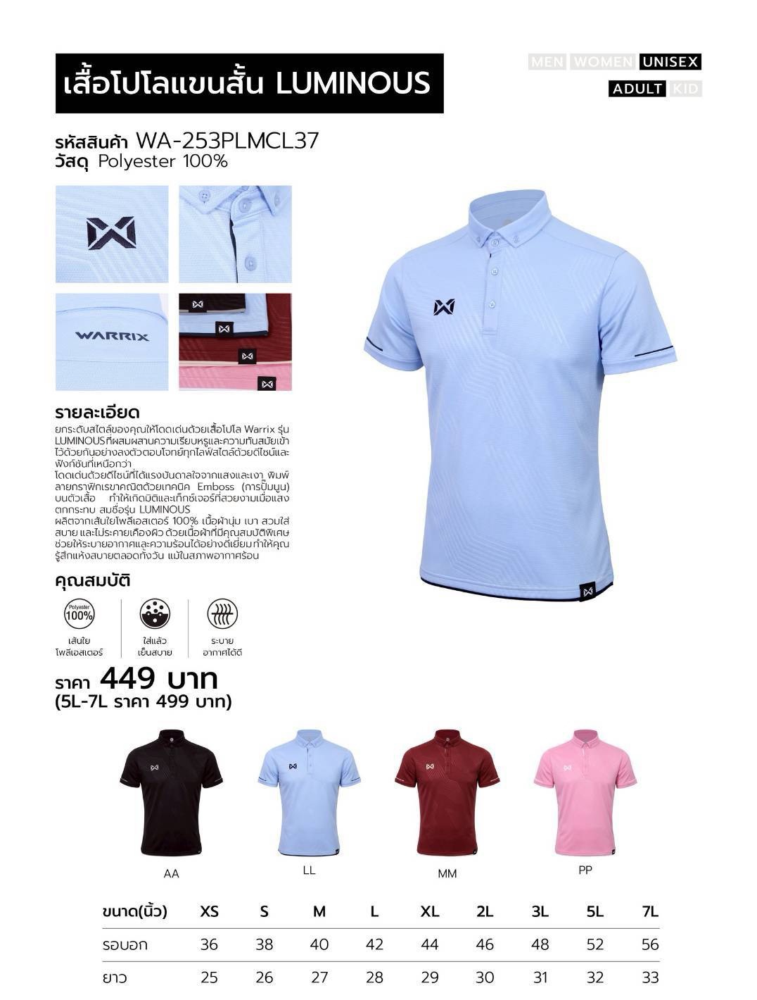 ✅เสื้อโปโล เสื้อ Warrix วอริกซ์ รุ่นใหม่ล่าสุด